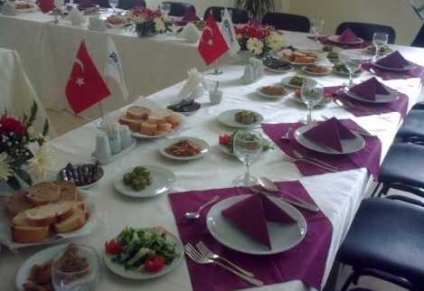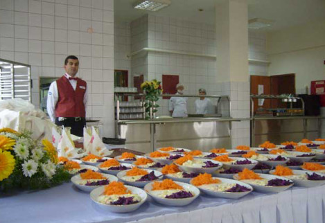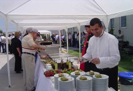 Konukların güler yüzlü karşılanması, renkli kokteyl ve punch ikramları , açık büfe öncesi profesyonel servis elemanları tarafından elde dağıtılan minik tatlılar, üzüm ve cevizle sunulan peynir tabakları, zengin açık büfe ikramlar…